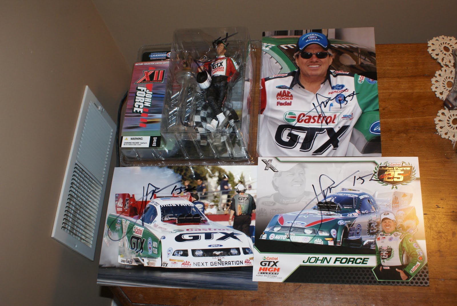 3) John Force - McFarlane action figure, 2 Driver's Cards & 2 8x10's.